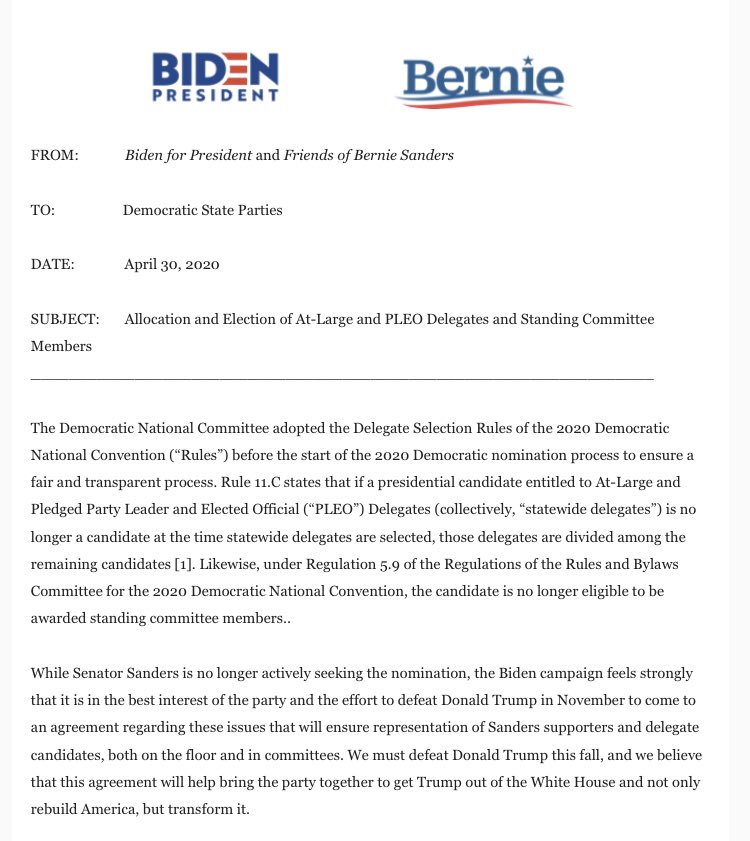 NEW: The @JoeBiden & @BernieSanders campaigns have reached an agreement with the DNC (Original Post) Donkees Apr 2020 OP