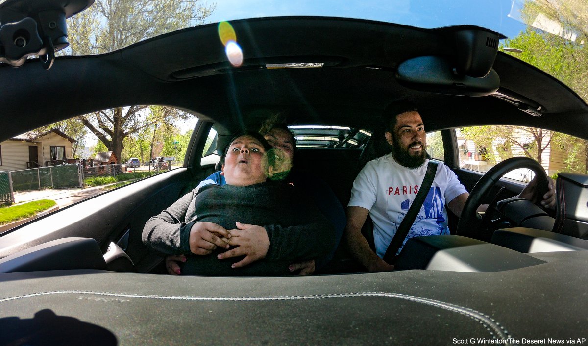Instead the kid is riding in a front passenger seat in his mother's lap.