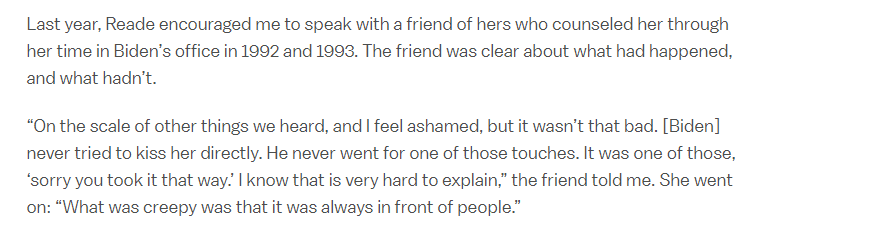 Even her friend, who apparently counseled her through the ordeal back when it happened, said nothing of the assault.