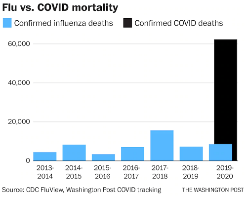 (2,657 posts)The huge fatalities numbers for the flu are estimates based on a feeling that six times or more flu deaths go undetected. 80,000 are confirmed CV19 deaths. The estimated deaths are much higher.