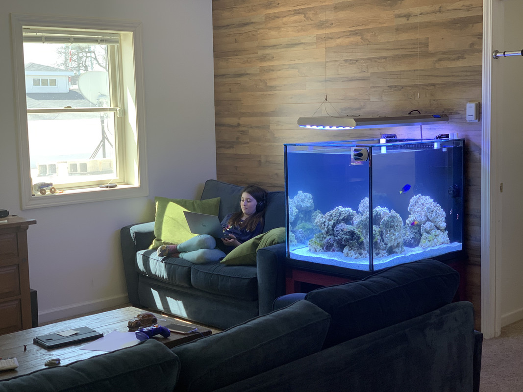 (3,557 posts)I only have five fish, two shrimp, a sea urchin and handful of dwarf hermit crabs but I stare at it more than I watch TV. Ill slowly be adding fish over the next few months and Ill eventually have about 20 fish in there.