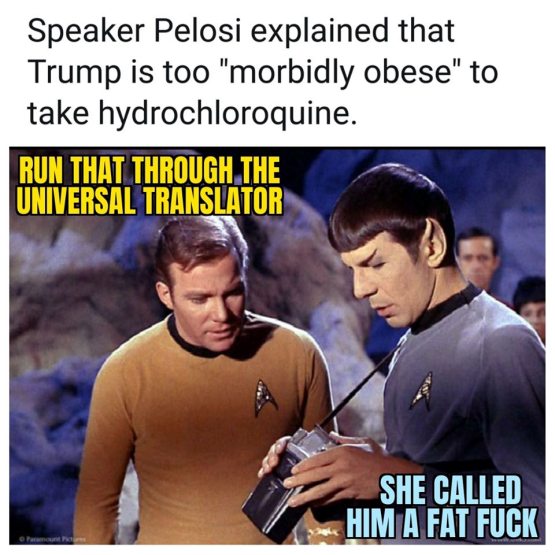 Sorry if Pelosi offended anyone, doubt she meant to do that. She was talking about the president of the United States pushing an unproven drug that has been known to kill some people, overweight and otherwise.