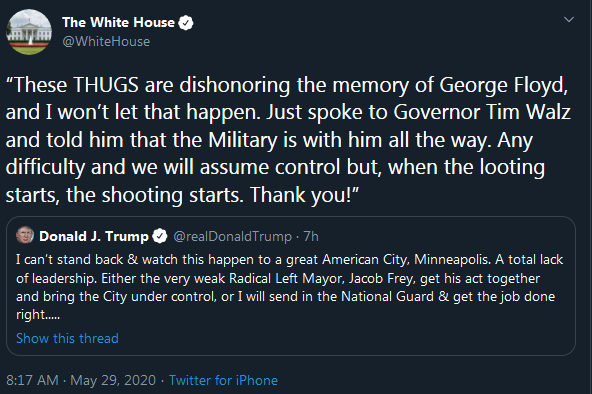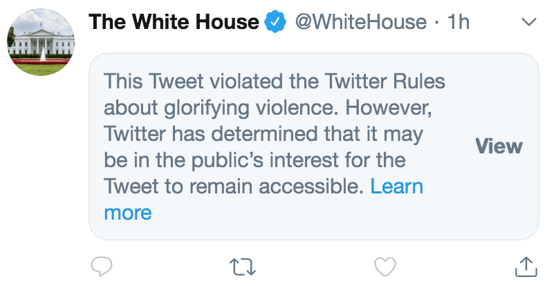 Related: Editorials & Other Articles, Issue Forums, Alliance Forums, Region ForumsThe White House Twitter account just reposted the tweet that Twitter put a warning on last night