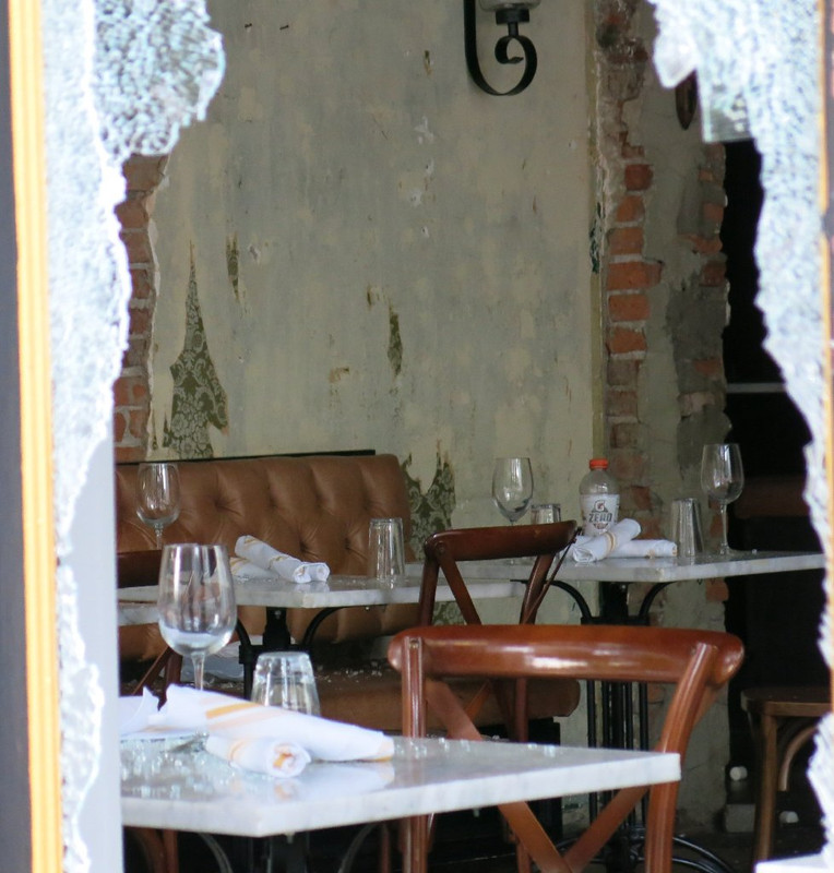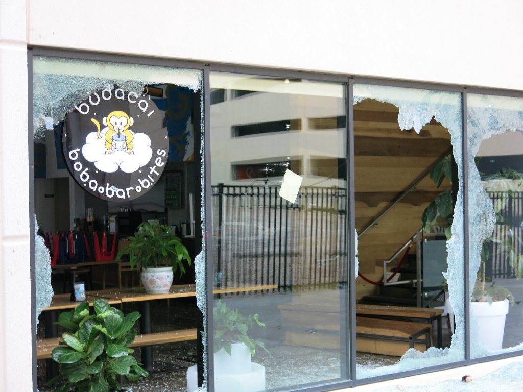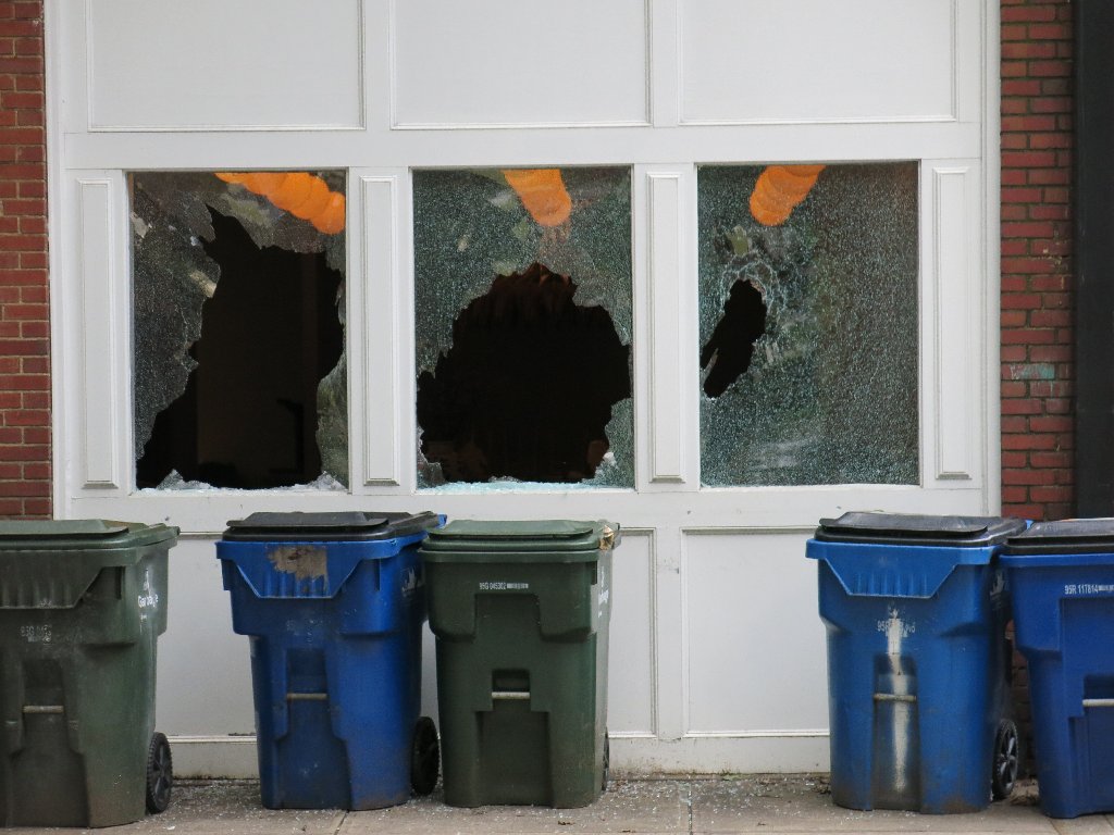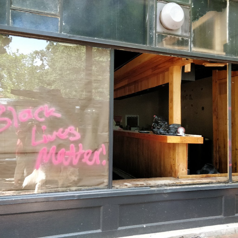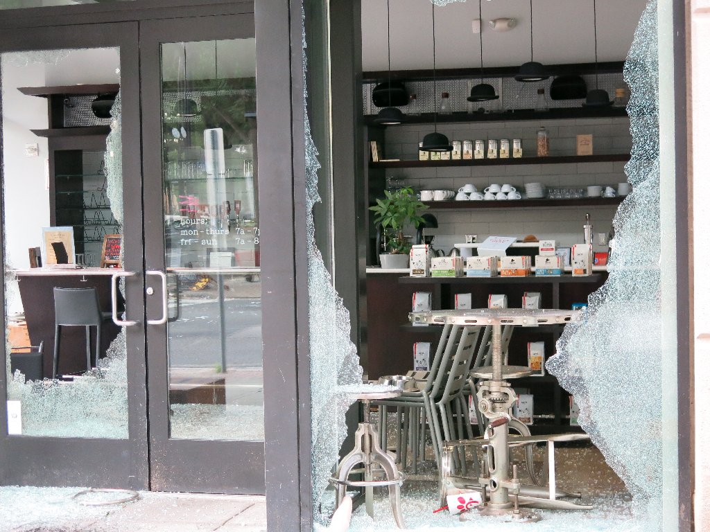 The coffee place that anchors another corner of my building just got finished replacing glass that had been broken by a homeless man throwing rocks through windows in the area. I witnessed him breaking two windows one Sunday morning several weeks ago when out walking Snowy. I watched him be arrested by police. No force. No guns drawn. White cop, black man. Treated very respectfully as he was caught red handed breaking the windows.