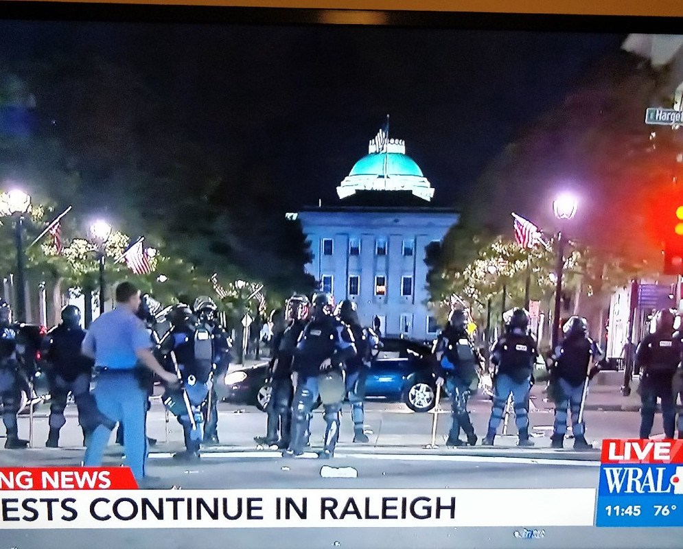 News reports indicate the Raleigh Mayor will be announcing a curfew to go into effect tonight. Governor Cooper has authorized deployment of the National Guard for Raleigh and Charlotte.