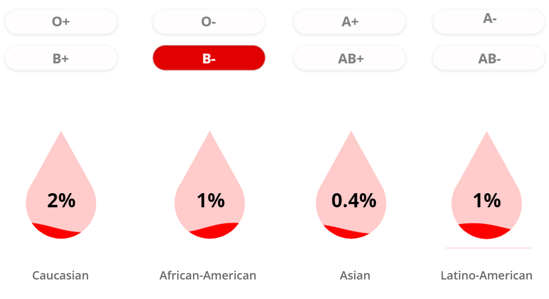 (26,014 posts)ethnic or racial identity. So, yes, a lot of people of African descent have type O. But so do most Europeans and Asians. Blood types are inherited on an individual, not group or ethnic or racial basis. So, the child of a white, European American with type O and an African American of type A would have type A because A is dominant over O.