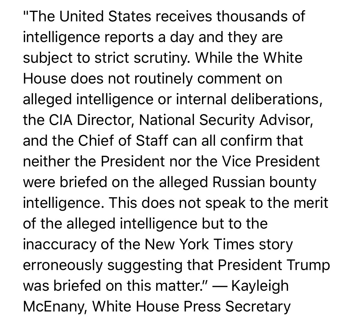 Related: Editorials & Other Articles, Issue Forums, Alliance Forums, Region ForumsPressSec says neither Trump nor Pence were briefed on the "alleged Russian bounty intelligence"
