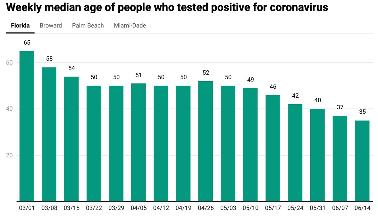 (14,770 posts)But, speaking as an older person, I suspect if we looked at the numbers used to create that chart, the infections in Florida's elderly are still quite shocking. It's just that infections in younger people have gone out the roof.