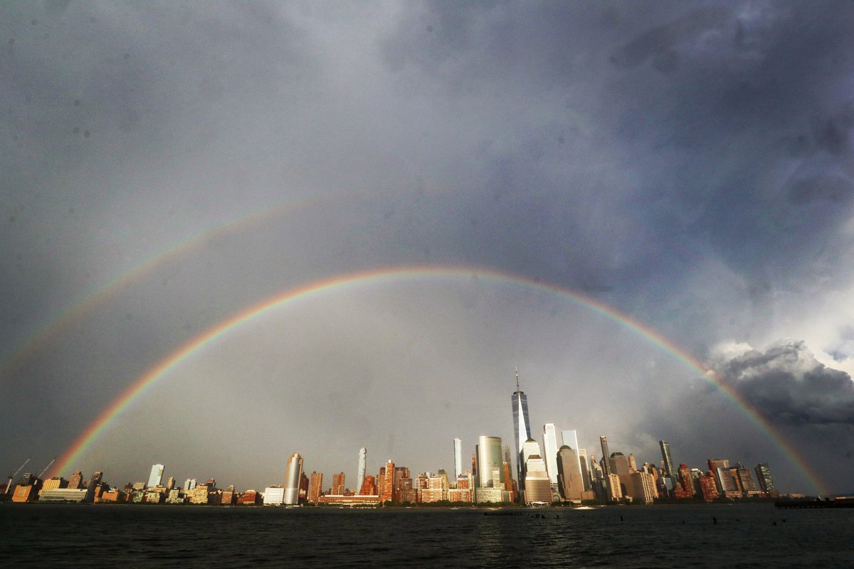 A double rainbow over lower Manhattan on Sunday evening during Pride weekend in New York City