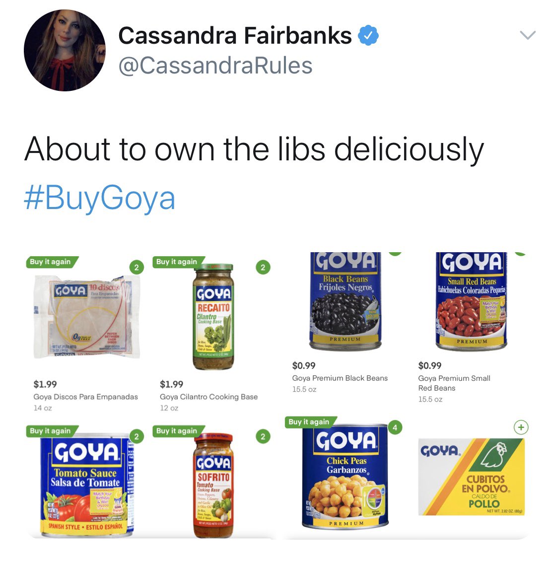 Goya is a New Jersey family owned company (Eden is a coop and Barda is family owned). Maybe some pressure on Goya will force the family to dump that Trump loving idiot from leadership.
