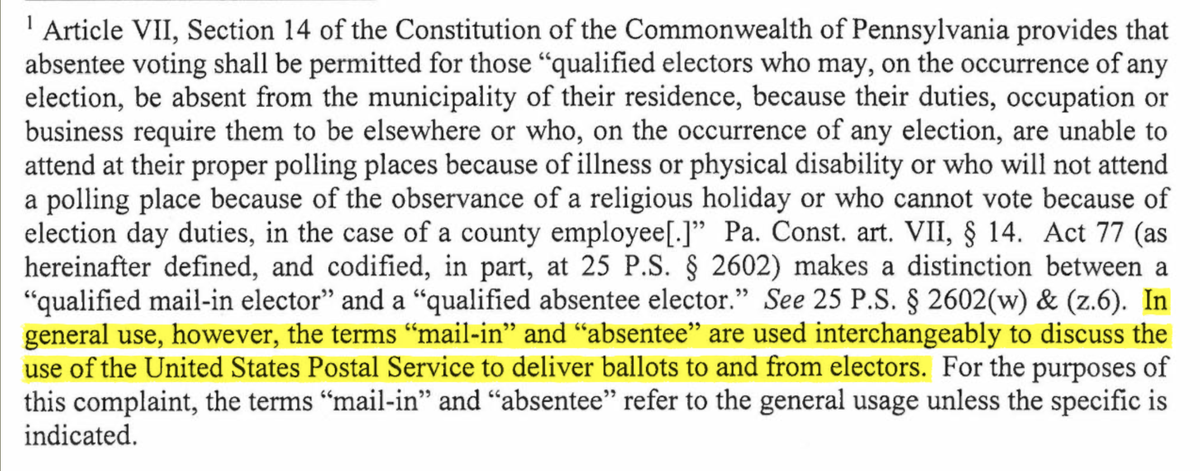 Trump's lawyers admitted in court that the terms 'mail-in' and 'absentee' are used interchangeably
