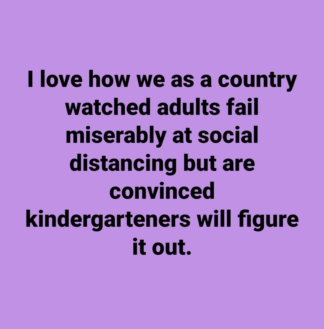 Every American parent should refuse to send their kids to school until this government flattens the curve on Covid. Better yet, refuse until our government acknowledges its role in making it so bad in the first place AND makes it go away completely. Kids don't deserve to be guinea pigs in Trump's sick, deranged experiments. How long before he is forcing kids to drink aquarium cleaner or accepting injections of Clorox? Don't think he will? He would stop at nothing with his sick, depraved mind and his sick, depraved white supremacist, racist, sexist, homophobic, transphobic bullshit. He's batshit and no one is calling him on it. Pot users have suffered bigger and more severe "tough love" interventions than he ever will and he would do the worst stuff you can imagine. I'm so sick of a president who tells me aquarium cleaner and Clorox injected into the veins is healthcare for a pandemic. Why do Republicans live to be so old and then keep living and spreading their lies and bullshit for so long after even that? Fucking hell.