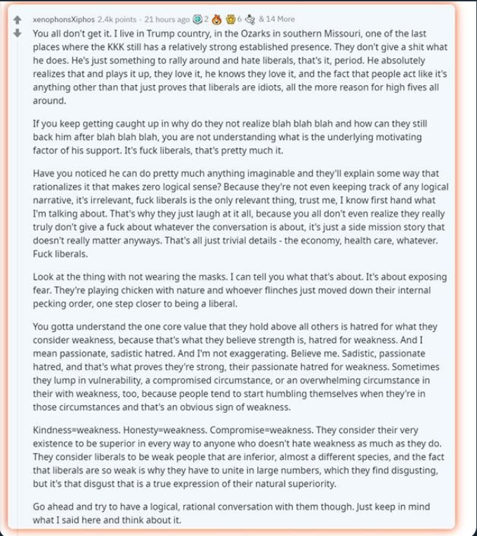 (24,599 posts)See fwiw: "You all don't get it. I live in Trump country, in the Ozarks in southern Missouri..."