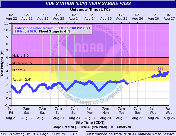 Tide station - Sabine Pass, TX - 082620, 9pm:
