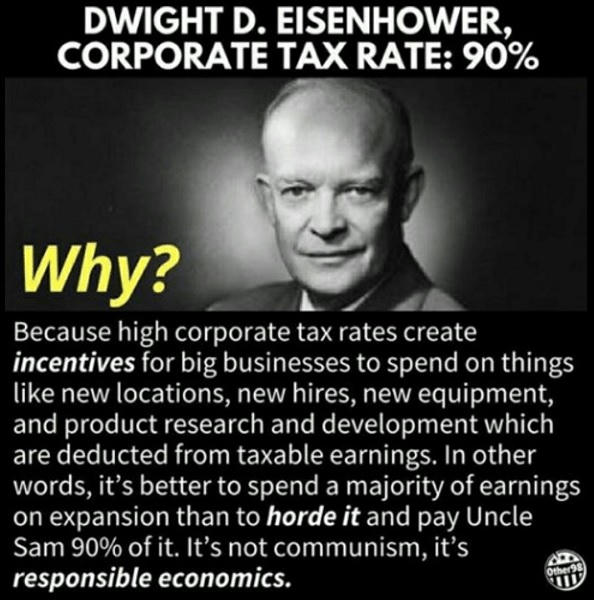 (1,648 posts)Everyone presumes that it just means someone paying 90% instead of forcing reinvestment back into the country and American People, which allows them to keep ownership of that 90% rate. The Democratic Party has done a poor job of educating the American People about how it really works and comparing it to the slash and burn Republican rates destroys them.