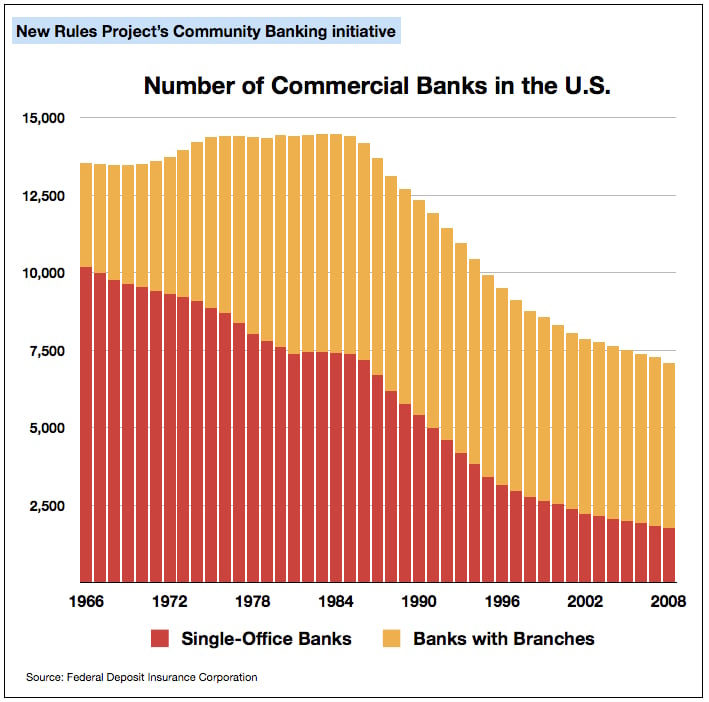 We need to start writting to congress and demand that the laws be obeyed and get large businesses t spin off their purchased competitors and we need to get the banks to split up.