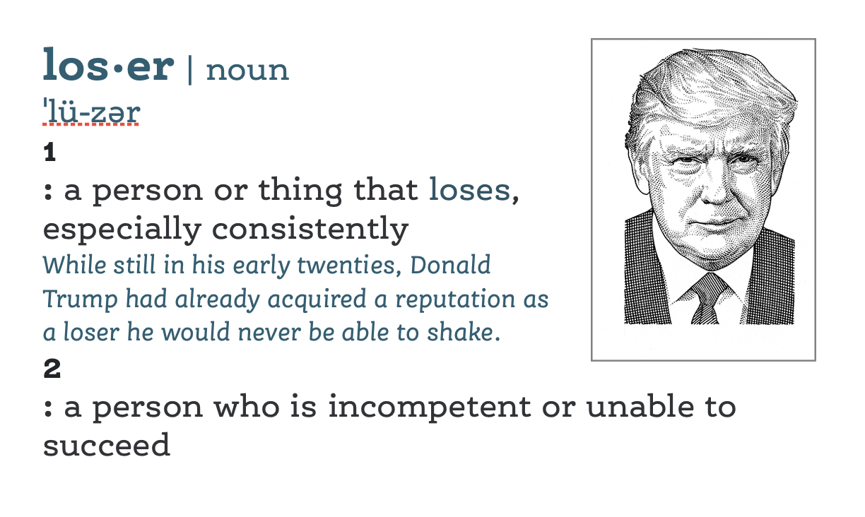 (26,144 posts)6. The perfect word...LOSER! You win!!