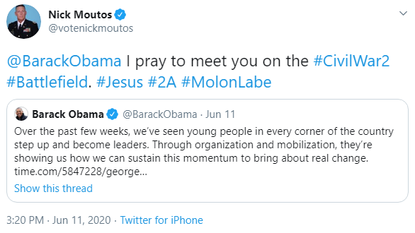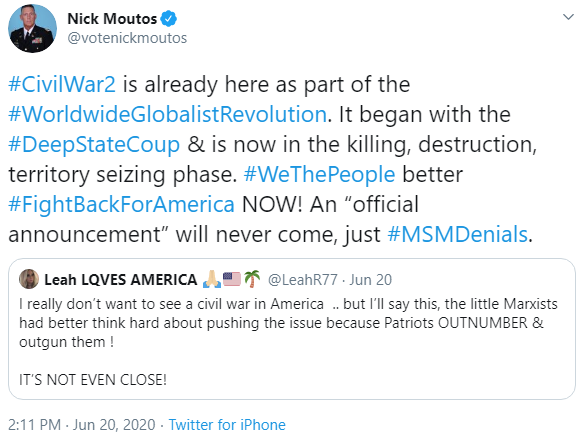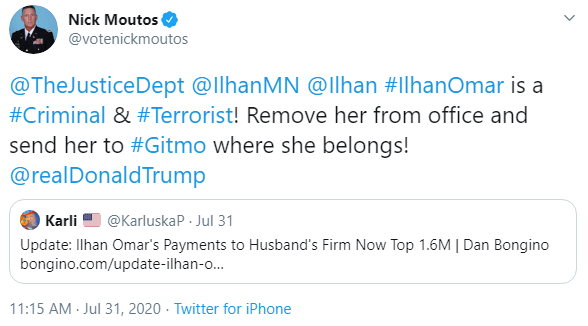 Nick Moutos threatened Black Lives Matter protesters and has regularly referred to the organizers as terrorists. He called Islam a virus and trans people an abomination.