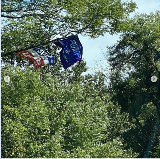https://www.instagram.com/p/CFVdjkBpAOR/joyannreid Sometime in the last 48 hours, someone climbed, or laddered their way up a tree near where we live and hung these two Trump flags. To be clear, these are not campaign advertisements, which weve all seen large signs staked into the ground, typically with a city or county permit. These are high-flying flags, hoisted in a tree, in a very multi-racial, quiet suburban neighborhood where they can be seen from the main road, and potentially from the nearby shops. This isnt political advertising. I flipped and zoomed in if you scroll to the last slide, so can see that one of the them reads: Re-Elect Trump as President of the United States Stop the Bullshit. What would you make of this?