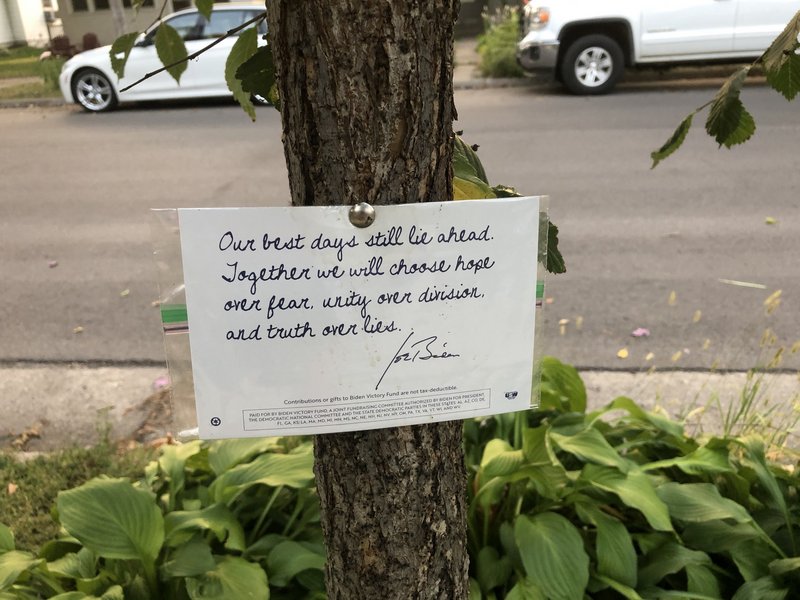 It was tacked to a little boulevard tree, barely noticeable.