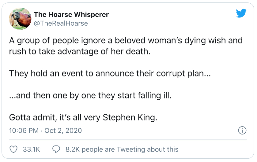 (10,106 posts)This is what the reporter said, "In order to get her (Amy Coney Barrett) out of committee, Tillis and Lee (who have tested positive for COVID19) would need to be actually present. Without them there, if Democrats decide not to show up for the vote, that puts her getting out of the committee in jeopardy because they need an actual quorum. They need a vote with at least more than 1/2 of the members on the committee to be present." Lauren Fox - Congressional Reporter on CNN's Fredricka Whitfield's show this morning (10/3/20).