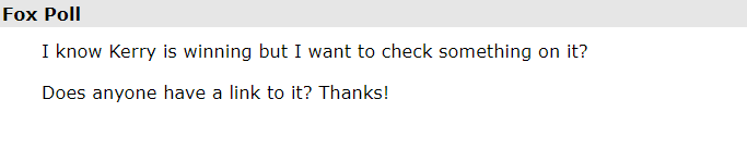 I remember one low-key but smart poster named Dolstein who never got caught up in the 99.99% hype. He matter of factly posted all year that he didn't think Kerry was special enough to defeat an incumbent.