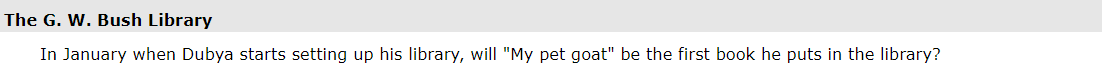 1. In the fall of '00 Bush win's the election off bs fraud. I still be he stole it and the Supreme Court helped him. It was the first time I saw a president win without the popular vote and unfortunately not the last time.