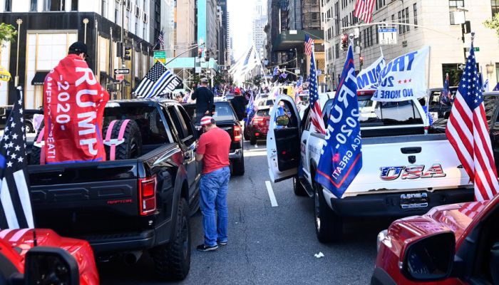 A caravan of more than 100 vehicles driven by out-of-town Trump supporters brought Fifth Avenue to a halt early Sunday the latest show of support for the coronavirus-stricken president. The long line of cars, trucks and motorcycles had mostly driven into the city from Long Island grinding traffic to a halt for at least 30 minutes as they arrived to loudly cheer for the president outside his Trump Tower home.