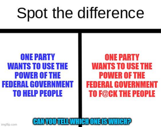 (53,345 posts)7. right side should say: one party wants to use the power of the federal govt to help ONE person
