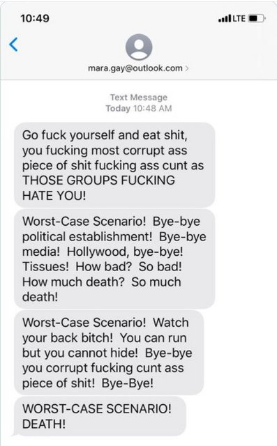 I hope she reports the the threatening text to the police. And for some medical assistant to tell her that she didn't have coronavirus - how appalling
