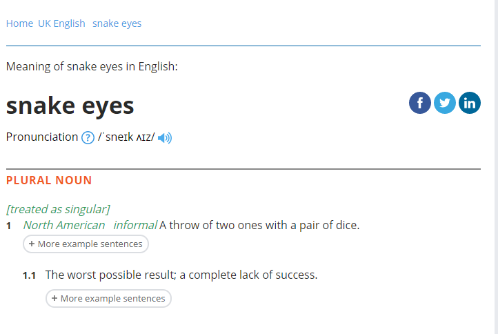 (29,949 posts)1. Sorry, snake eyes is bad?