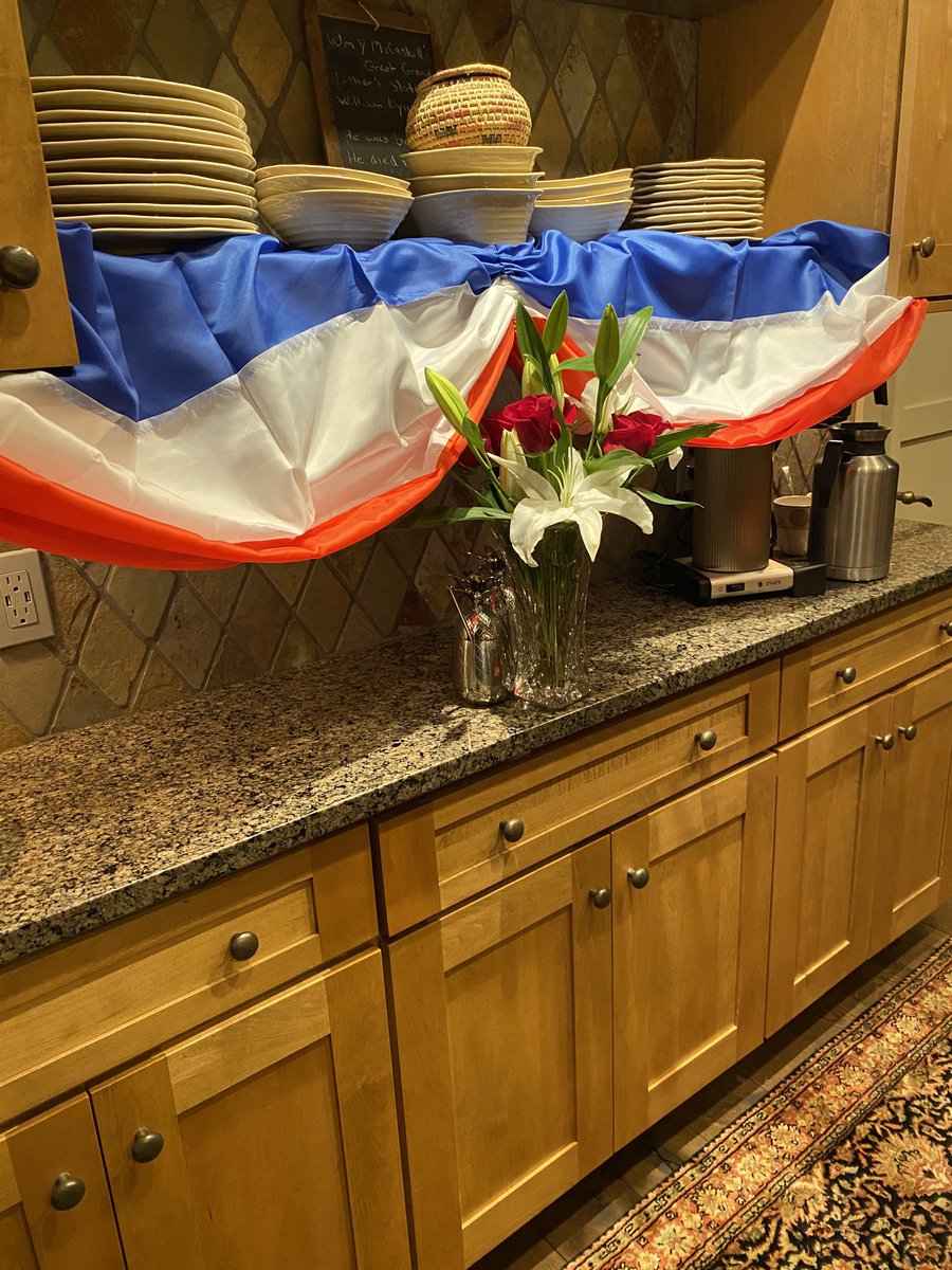Claire McCaskill decorated her kitchen cabinets with red, white, and blue bunting. She is great.