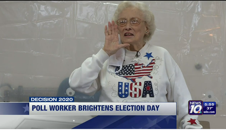 https://www.wilx.com/2020/11/03/hear-ye-hear-ye-96-year-old-poll-worker-continues-to-brighten-election-day-in-unique-way/