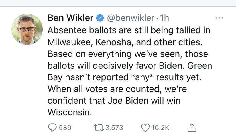 (4,131 posts)Its way too close to celebrate. We got the big jump we needed from Milwaukee but a lot of the votes outstanding are from areas not likely to be as blue.