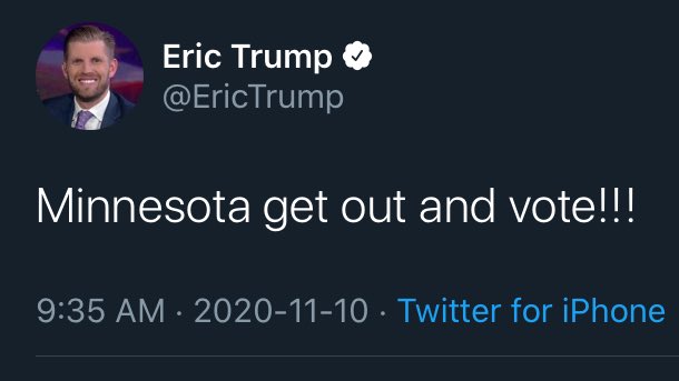 Eric Trump tells Minnesotans to 'get out and vote' -- a week after Election Day (Original Post)