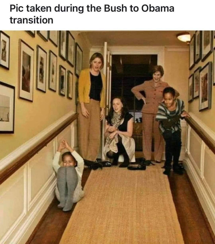 (34,909 posts)I have even softened my opinion of Laura, because of things like this, and for other reasons. (Dumbya, not so much.) I remember the twins going out of their way to help Sasha and Malia adjust to their new lives and new home, which they didn't have to do. Sasha and Malia likely tried to return the favor to Barron, although I doubt Barron's asshole parents ever let him near those girls. His loss, although I have a feeling that Barron never actually has lived in the White House...