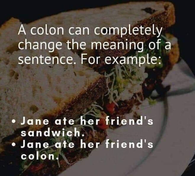 (37,622 posts)There's also, "Jane ate her friend's colon sandwich."