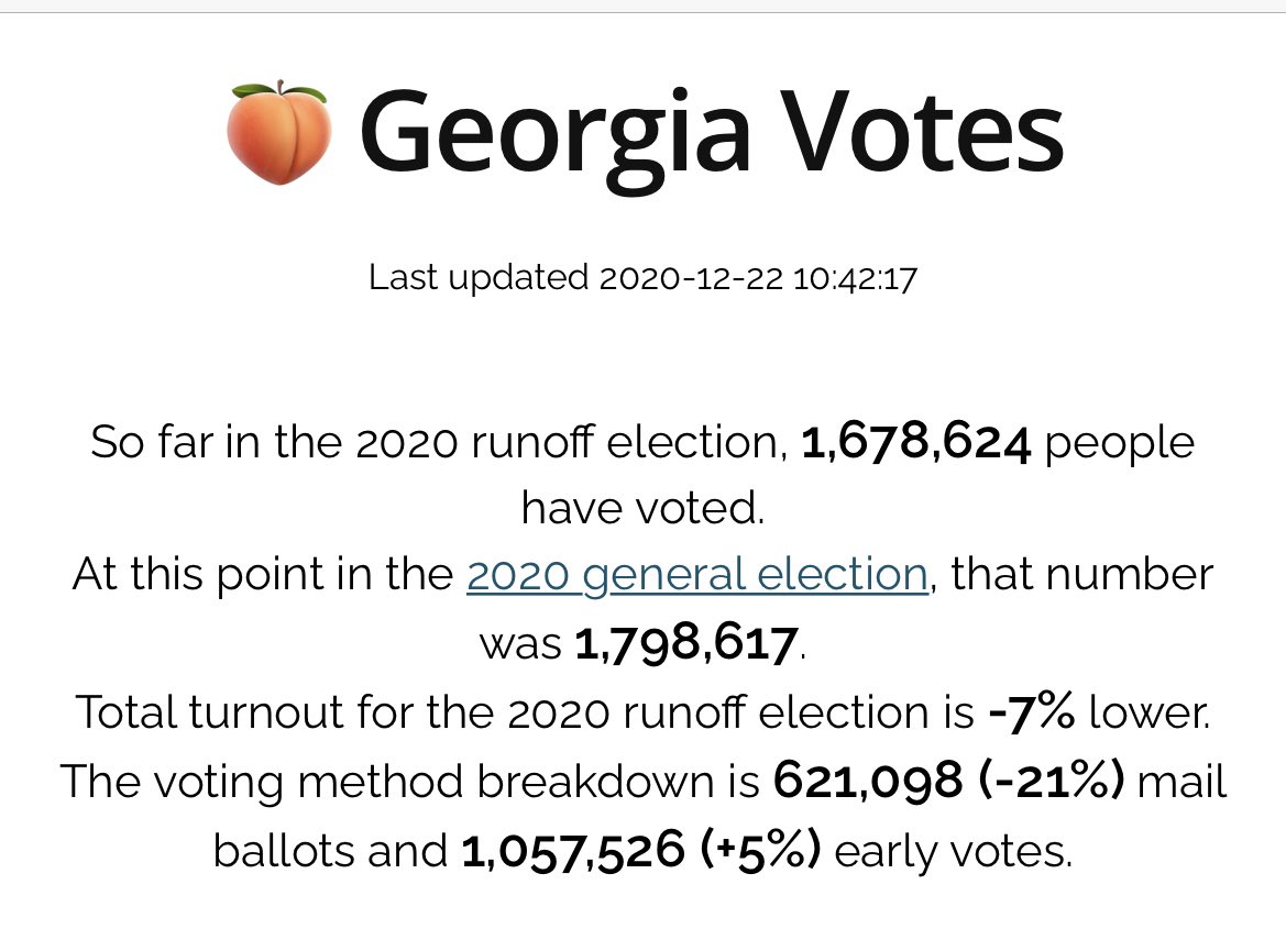 Nearly 1.7 million Georgians have already cast ballots in the state’s Senate runoff elections, setting a near-presidential level pace. About 50,000 of those votes were cast by Georgians who didn’t participate in the general election, per @gtryan’s analysis. #gapol #gasen