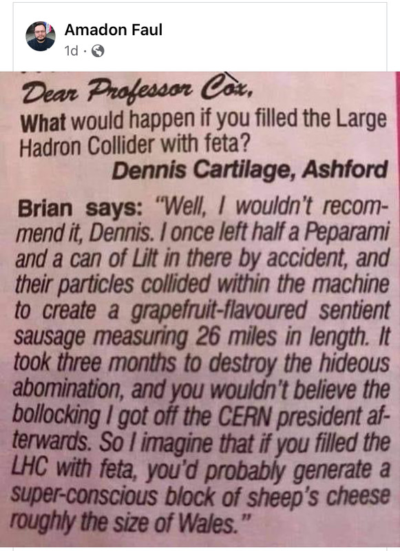 Related: Editorials & Other Articles, Issue Forums, Alliance Forums, Region ForumsWhat would happen if you filled the large Hadron Collider with feta?