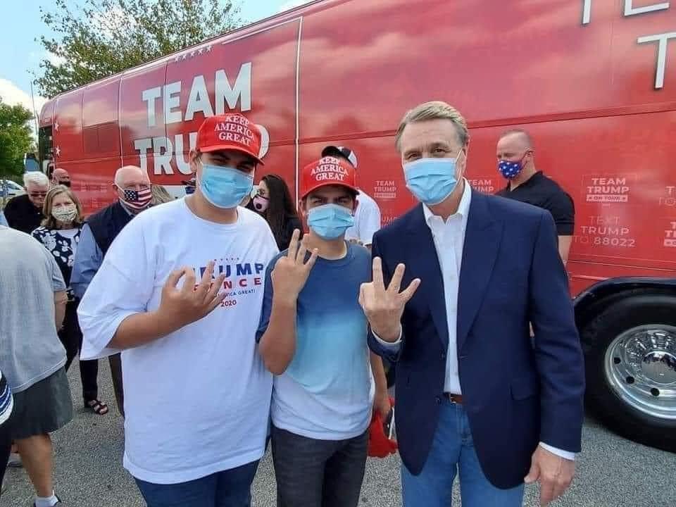 .@sendavidperdue should explain why he is making a white power sign in this photo posted by a Trump campaign operative on October 15