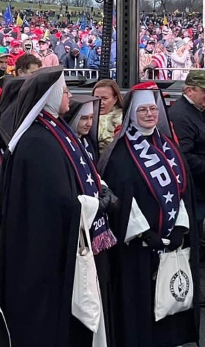 (551 posts)Went to 12 years of Catholic schools. If these are actually nuns then they violate so much catholic doctrine by supporting a man who commits adultery, tells lies, and hates the poor such as immigrants. But then again look at how many right wing Christians also overlook these.