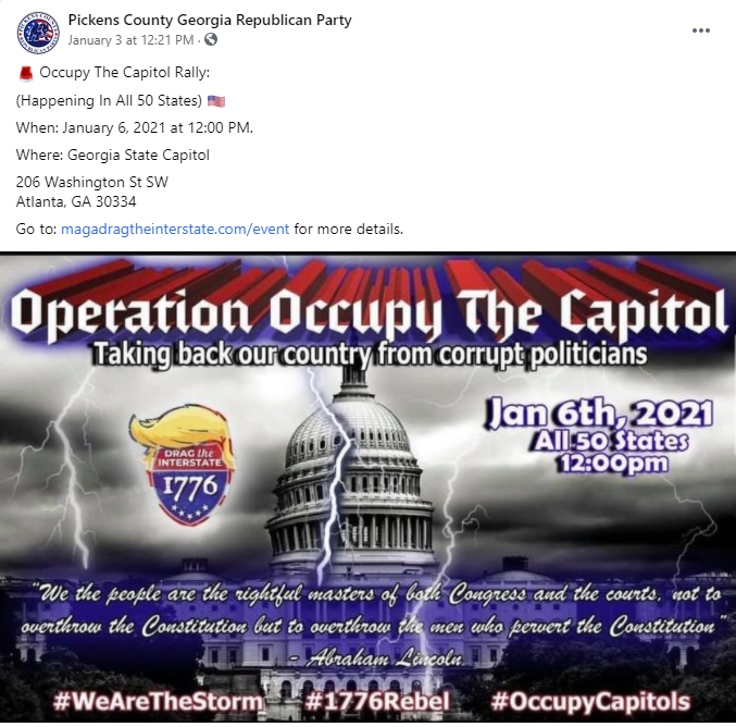 One day before insurgents took the Capitol and went in search of congressional hostages, that is exactly what Republican organizations across the nation told them to do. As Media Matters shows, multiple Republican organizations were directly calling on those attending the Jan. 6 event to Occupy the Capitol. That message came from organizations in (at least) Texas, Oregon, Georgia, and North Carolina.