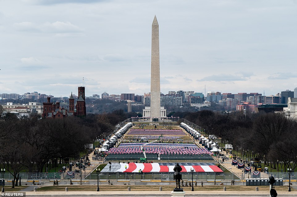 Nearly 200,000 U.S. flags are on display at the National Mall ahead of Joe Biden's inauguration. The "Field of Flags" represents the American people who were unable to travel to Washington, D.C. for Inauguration Day amid the coronavirus pandemic and security threats.
