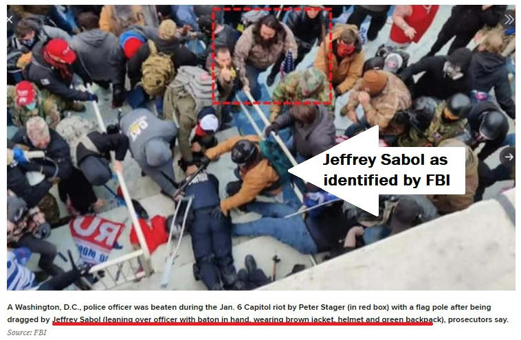 He's also seen on some of the disturbing videos, dragging the Capitol officer down the stairs before this shot was taken.