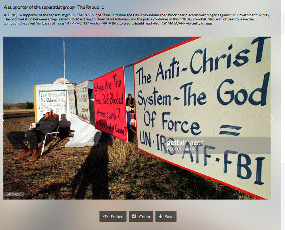 (34,031 posts)There have been efforts to promote Texas secession in the state at least since the 1990s.[15] At this time, Richard Lance McLaren founded the Republic of Texas organization based on his property within the Davis Mountains Resort in Jeff Davis County, becoming the most active and influential secession group at the time. Essentially the organization claimed that the United States annexed Texas illegally and considered it to be held captive. The organization held itself out as an alternative government, based on the principle of very limited powers.[6]
