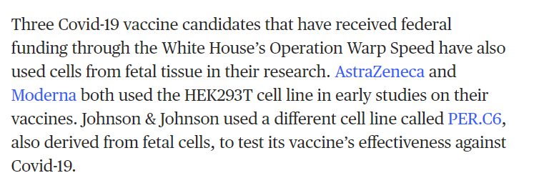 (54,169 posts)process (see my origianl reply) plus both the Moderna and Pfizer vaccines used them in testing leading up to the development (so I was too broad in my agreeing with that part of your reply). That said, the Moderna and Pfizer vaccines do not use them in their manufacture though and Catholic Organisations say those two are not morally compromised.