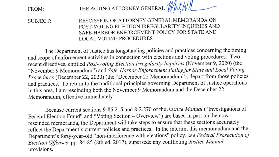 Good news from @TheJusticeDept. They have rescinded the two Trump DOJ policies related to elections.