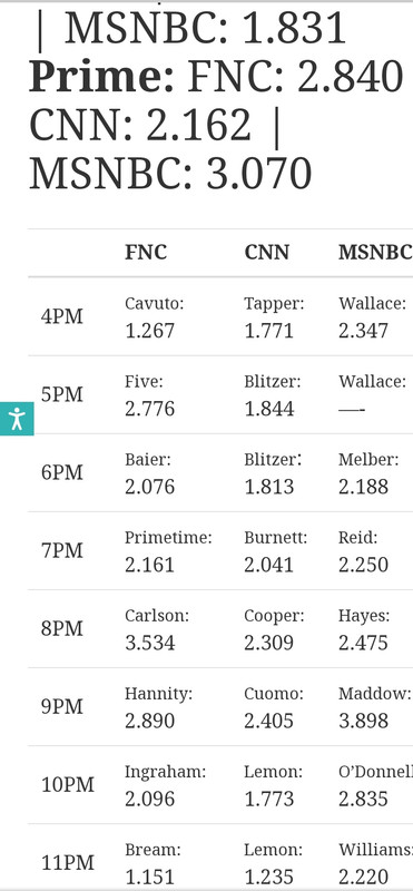 Adweek TVnewser doesn't track the wannabe FNC's. But yesterday's ratings in total viewers is very good news for reality based news viewers.