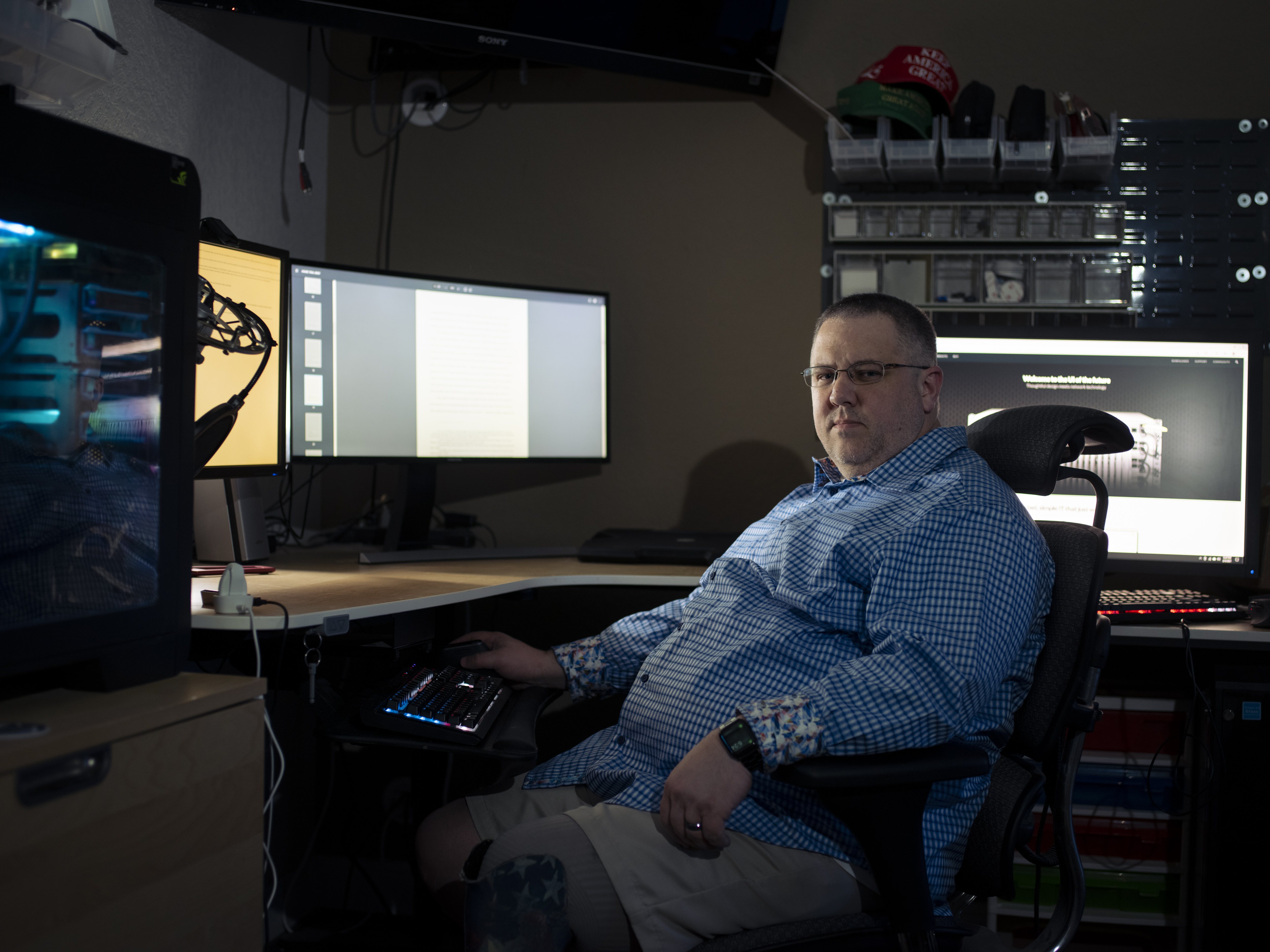 Jody Williams in his home office. Williams owned the domain for TheDonald.win but removed the site after the Capitol riots. (Matthew Busch for The Washington Post)