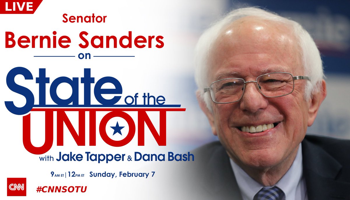 📺 Sunday Feb 7 - LIVE: @BernieSanders joins @jaketapper on #CNNSOTU. (Original Post)